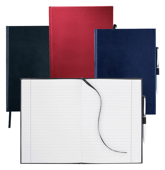 Description : Subtly-textured UltraHyde hardcover journal. Elastic pen loop. Matching ribbon page marker. 72 sheets of gray-ruled paper.